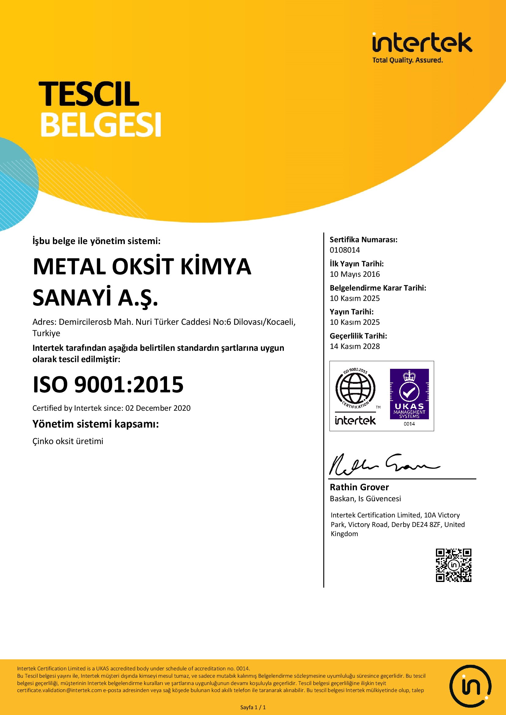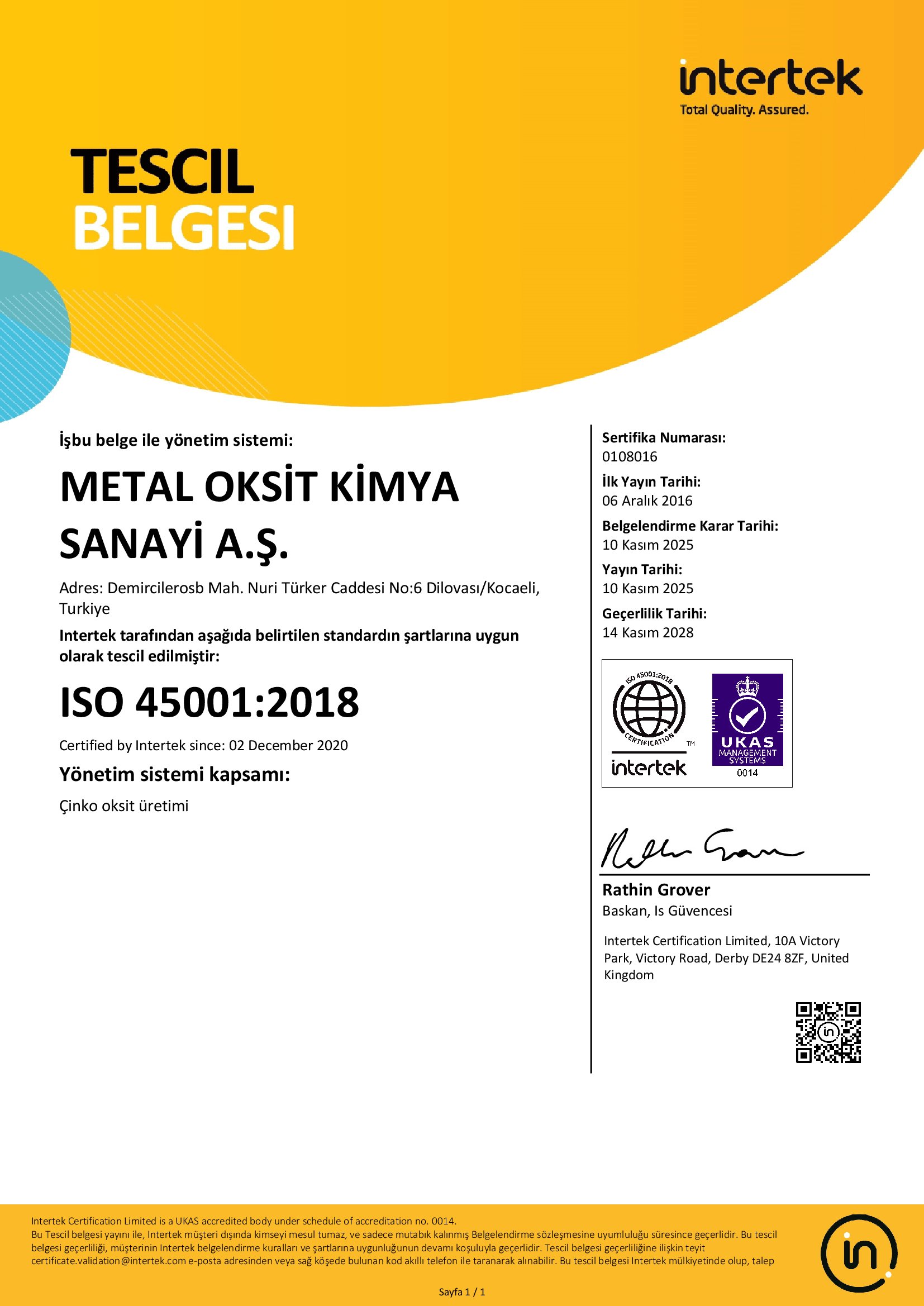 METAL OKSİT 1975 yılında kurulmuş olup, Türkiye ve Ortadoğu’nun ilk çinko oksit üreticisidir. Edindiği tecrübe ile Türkiye’nin en üst kalite ve en yüksek kapasiteli çinko oksit üreticisi olmayı vizyonu haline getirmiştir.
